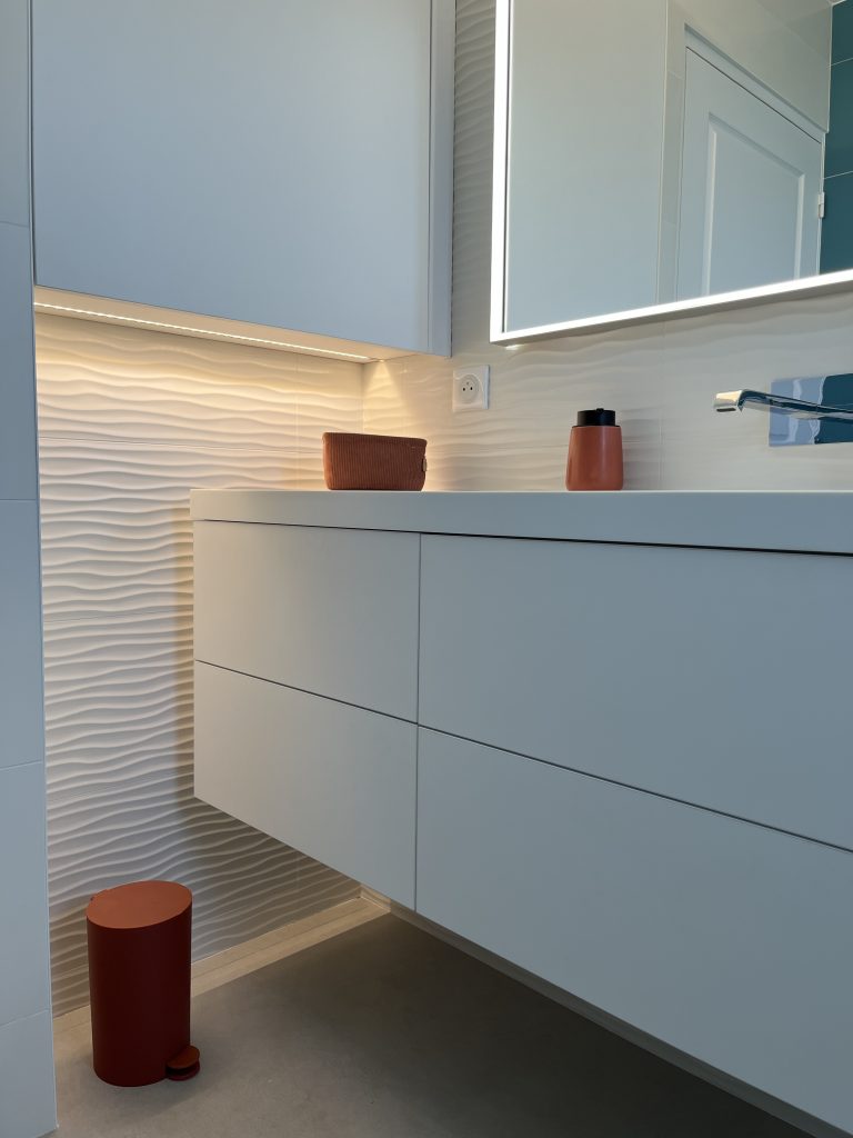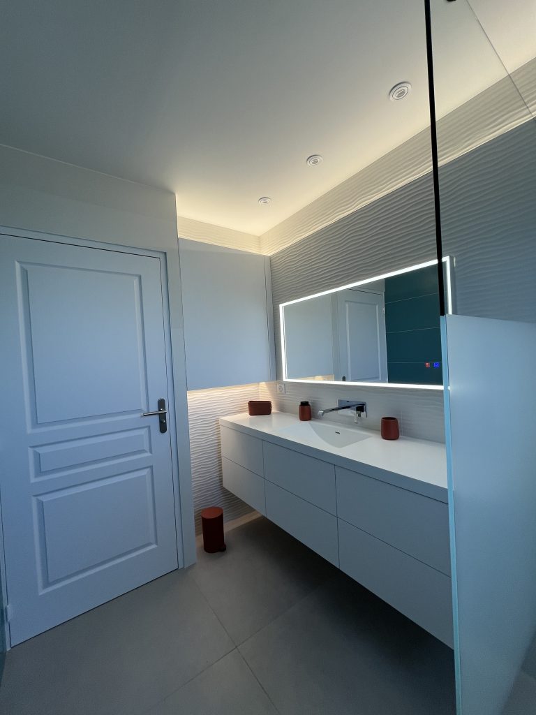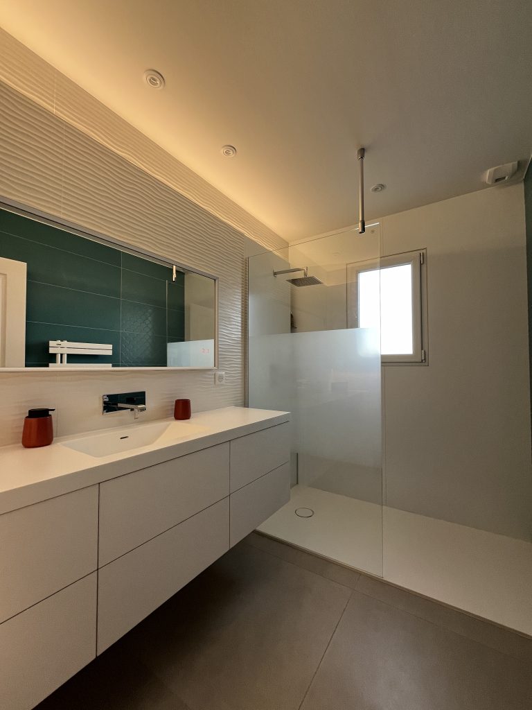 Rendre votre salle de bain à votre goût, fonctionnelle et pratique est notre priorité. Nous réalisons les travaux d’électricité et de plomberie nécessaires : évacuation d’eau pour votre nouvelle douche à l’italienne, éclairage au-dessus de votre double vasque. Nous réalisons la salle de bain de vos rêves.